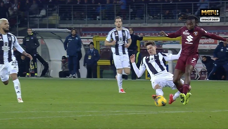 На 55-й минуте матча «Торино» – «Ювентус» (1:1, второй тайм) хавбек хозяев Янна Карамо упал перед штрафной «бьянконери» после подката Николо Савоны.