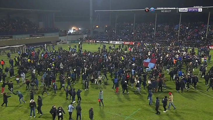 «Лион» уступил клубу 5-й лиги «Бургуан Жалье» по пенальти и вылетел из Кубка Франции, Ляказетт и Толиссо не забили с точки. Болельщики выбежали на поле