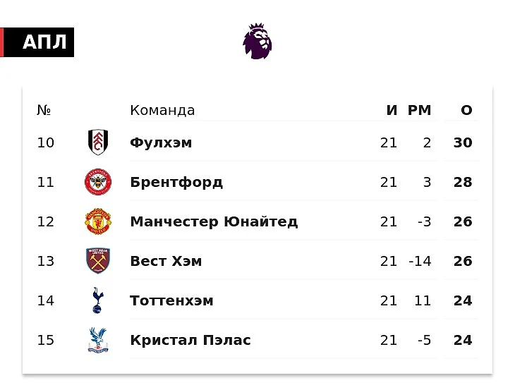 Команда Рубена Аморима победила «Саутгемптон» (3:1) в 21-м туре АПЛ и поднялась с 13-й строчки на 12-ю. Отрыв от 18-го места равен 10 очкам.