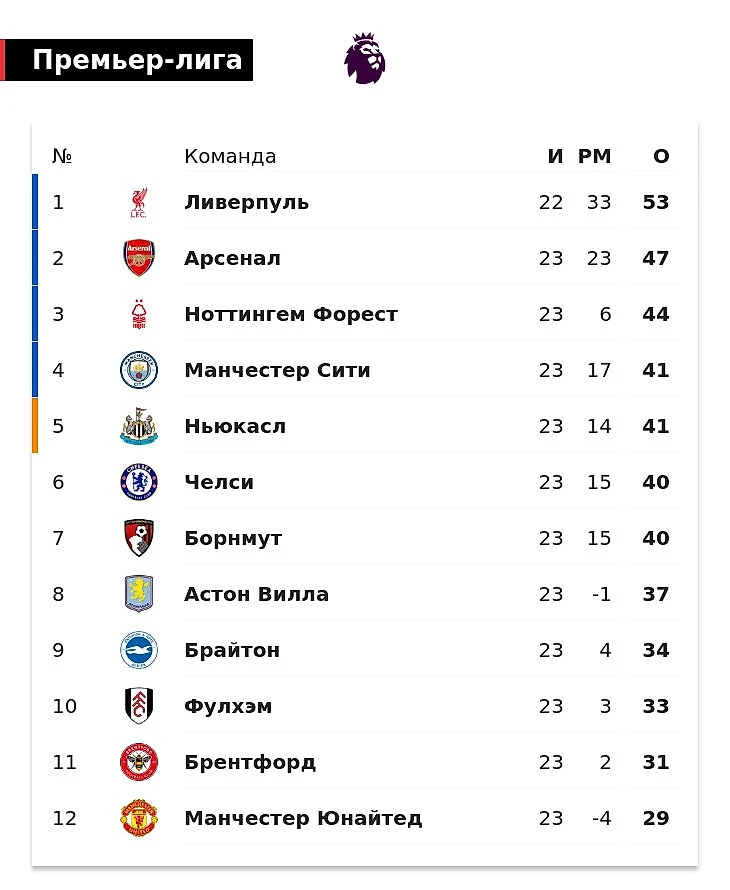 Манкунианцы сумели подняться на одну строчку и теперь занимают в чемпионате Англии 12-е место. Они набрали 29 баллов и отстают от лидирующего «Ливерпуля» на 24 очка.