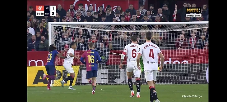 Следующая атака «Барселоны» после этого эпизода стала голевой – на 55-й минуте Рафинья забил после паса Пау Кубарси. После пропущенного гола футболисты «Севильи» вновь стали требовать пенальти за падение Соу.