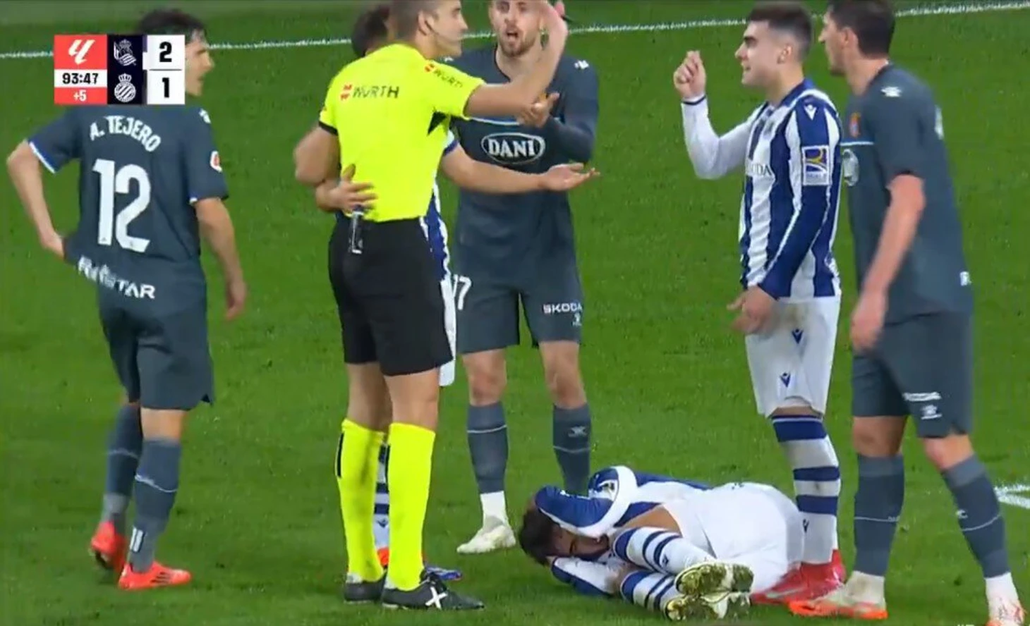 В свою очередь, игроки «Эспаньола» настойчиво просили судью добавить еще времени к матчу. В конечном счете Субименди пришел в себя, а арбитр продлил компенсированное время еще на 40 секунд.