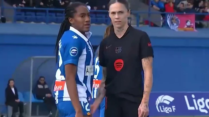 На 15-й минуте дерби, завершившегося победой «блауграны» со счетом 2:0, Мария Леон коснулась промежности Даниэлы Каракас и что-то ей сказала.