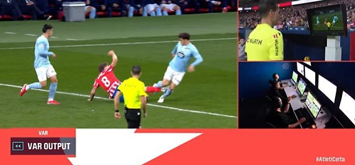 «Атлетико» остался в меньшинстве на 7-й минуте матча с «Сельтой». Барриос ударил Дурана шипами в голень