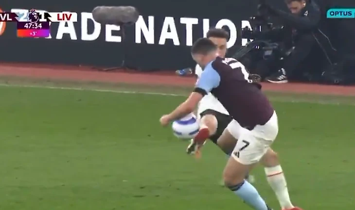 Перед вторым голом «Астон Виллы» «Ливерпулю» игрок коснулся мяча рукой.