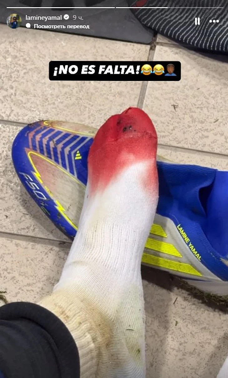 После окончания матча Ямаль продемонстрировал, что контакт был. Он выложил в соцсетях фотографию, на которой видно его окровавленную ногу.
