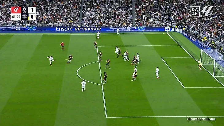 Полузащитник «Реала» открыл счет в игре с «Жироной» в 25-м туре Ла Лиги. Он подработал мяч грудью и точно пробил в дальний угол ворот из-за пределов штрафной площади.