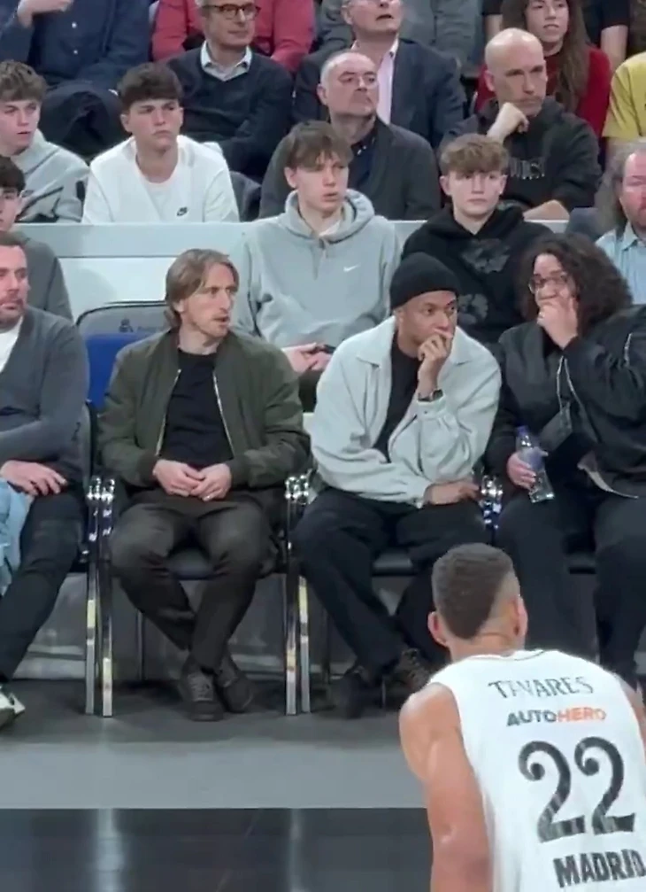 Килиан Мбаппе, Винисиус и Лука Модрич посетили баскетбольное класико в Мадриде.