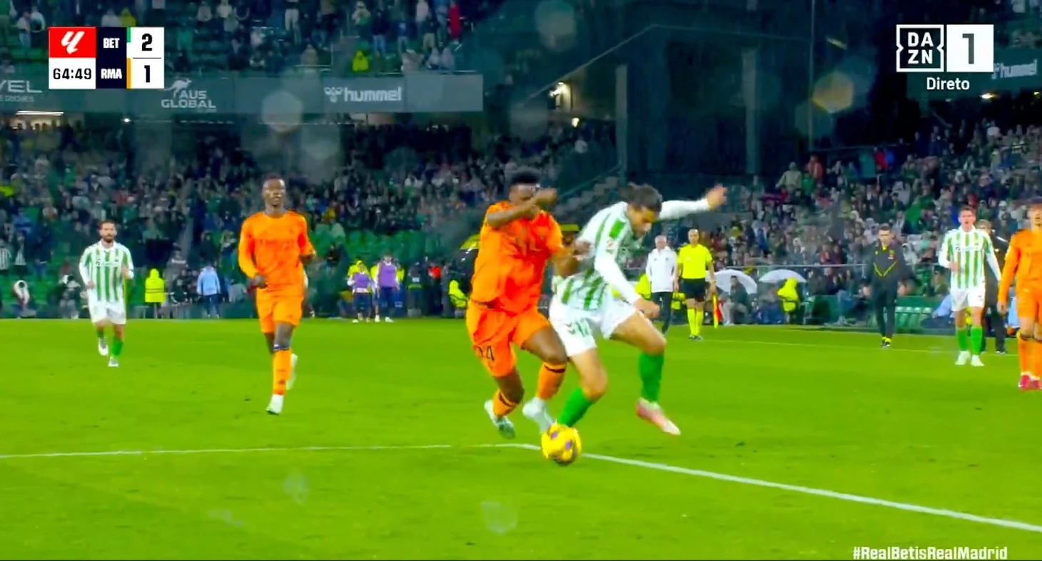 Родригес упал в штрафной «Реала» после контакта с Тчуамени, судья не дал «Бетису» пенальти. Итурральде согласен: «Контакт недостаточный»
