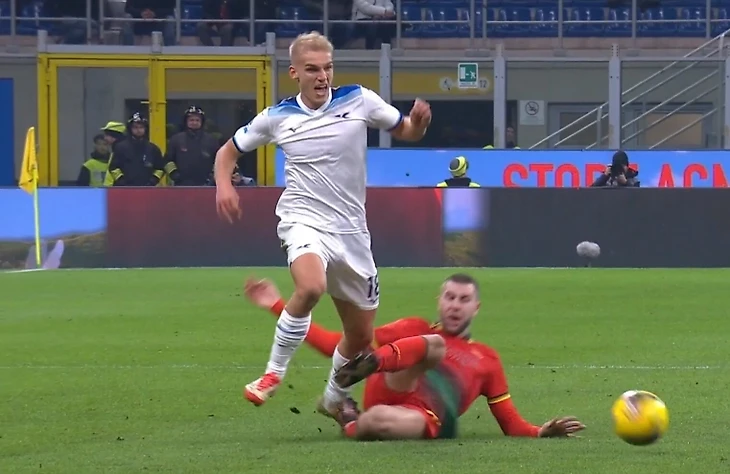Павлович удален за подкат сзади во 2-м тайме игры «Милана» с «Лацио» при 0:1