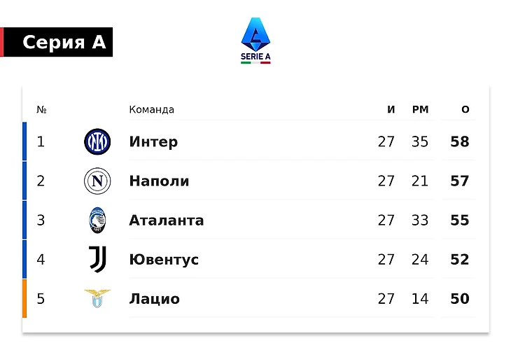 «Ювентус» одержал 5 побед подряд в Серии А и идет четвертым. Дальше – «Аталанта»