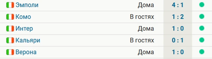 До этого были обыграны «Кальяри» (1:0), «Интер» (1:0), «Комо» (2:1) и «Эмполи» (4:1).