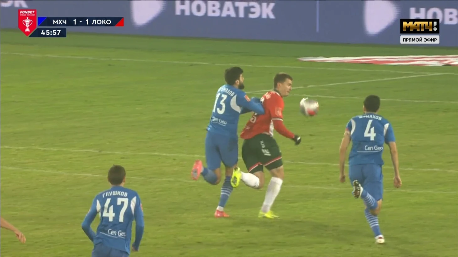 Красную за фол через 8 секунд после начала 2-го тайма получил Кагермазов. Защитник «Динамо» Махачкала подтолкнул в спину убегавшего к воротам Воробьева из «Локо»
