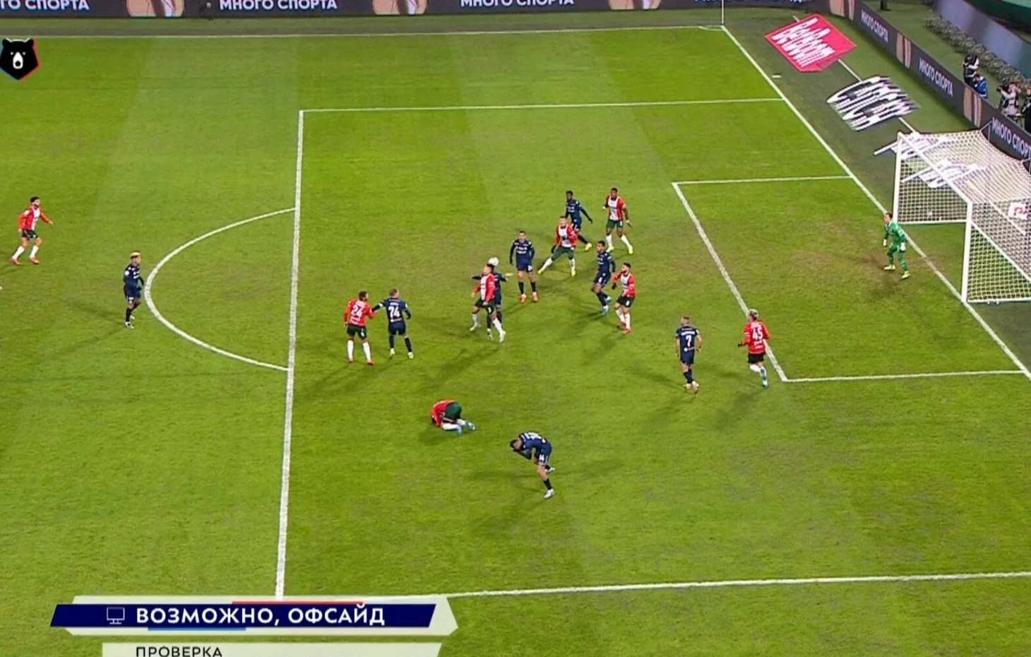 ВАР около 6 минут изучал момент в связи с тем, что автор гола мог находиться в положении вне игры. В итоге было установлено, что к Сильянову мяч попал от головы Касереса, главный судья Рафаэль Шафеев засчитал гол.