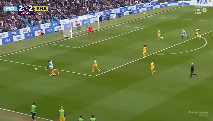 На 61-й минуте вингер «горожан» Доку получил от судьи Саймона Хупера желтую карточку за симуляцию после подката защитника Жан-Поля ван Хекке возле штрафной «Брайтона».
