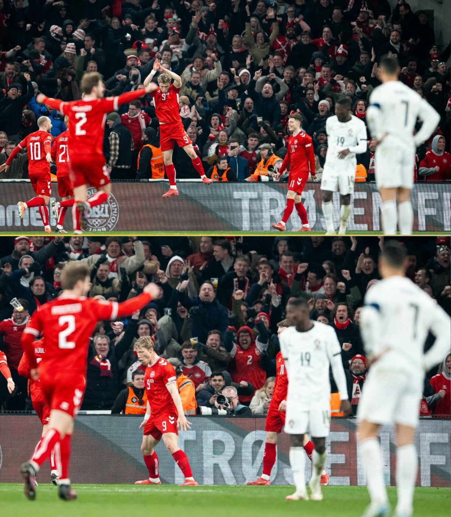 22-летний форвард сборной Дании и «Манчестер Юнайтед» отпраздновал гол в фирменном стиле Роналду.