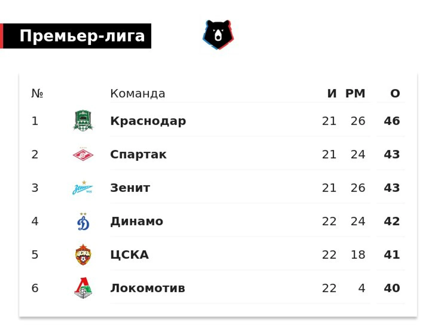 «Динамо», разгромив «Оренбург» (5:1) в 22-м туре Мир РПЛ, вернулось на 4-е место в таблице.