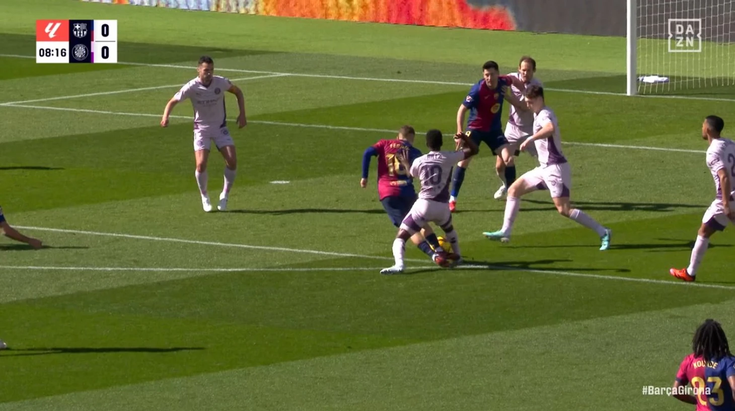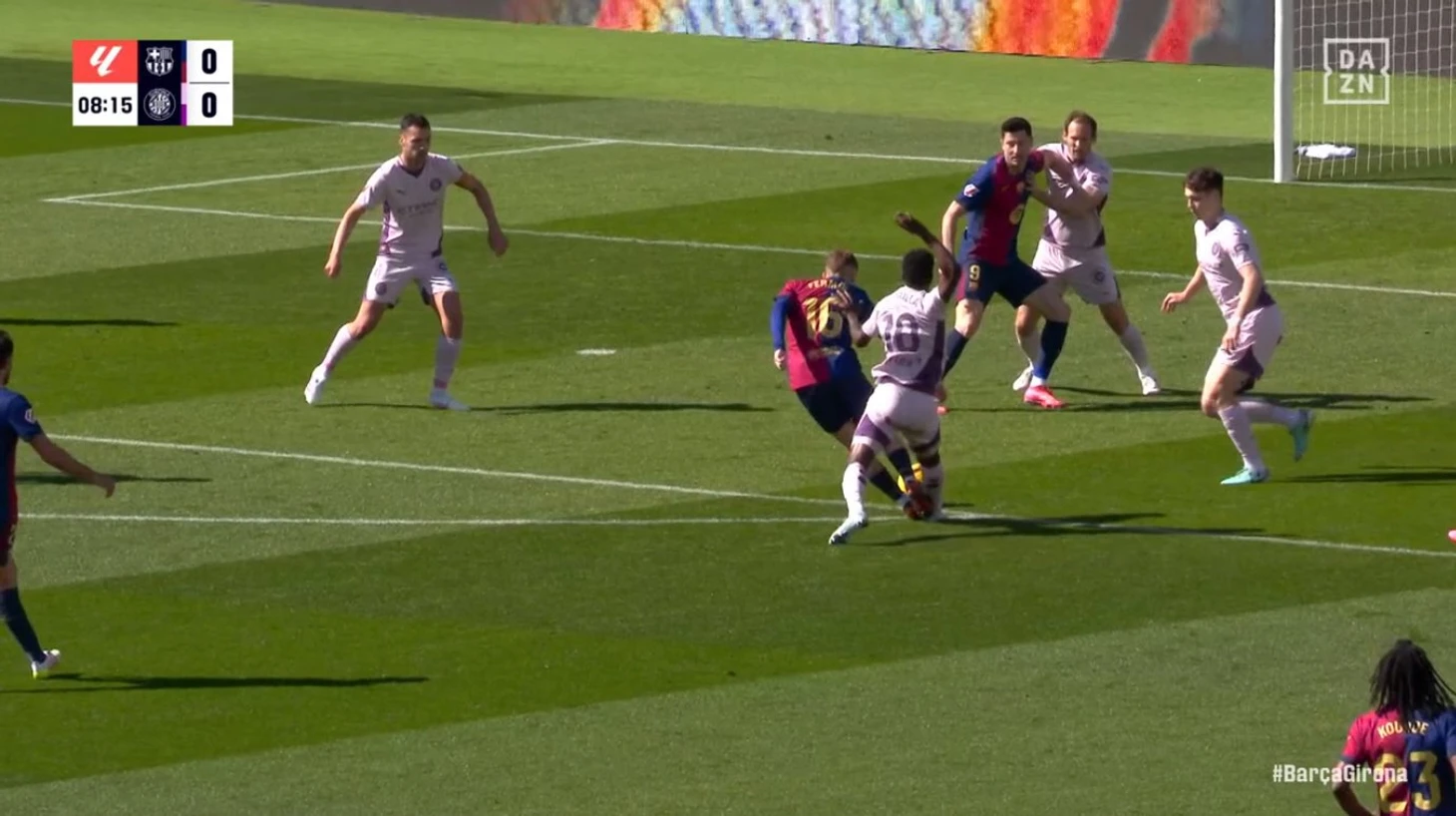 Арбитр не зафиксировал фол у границы штрафной в игре «Барселона» – «Жирона».