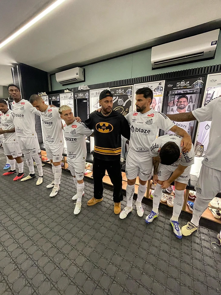 Неймар в костюме с эмблемой Бэтмена посетил раздевалку «Сантоса» перед матчем. Форвард не играет из-за травмы
