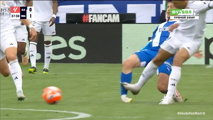 На 38-й минуте нападающий «Реала» в центре поля ударил шипами в голень полузащитнику Антонио Бланко в борьбе за мяч.