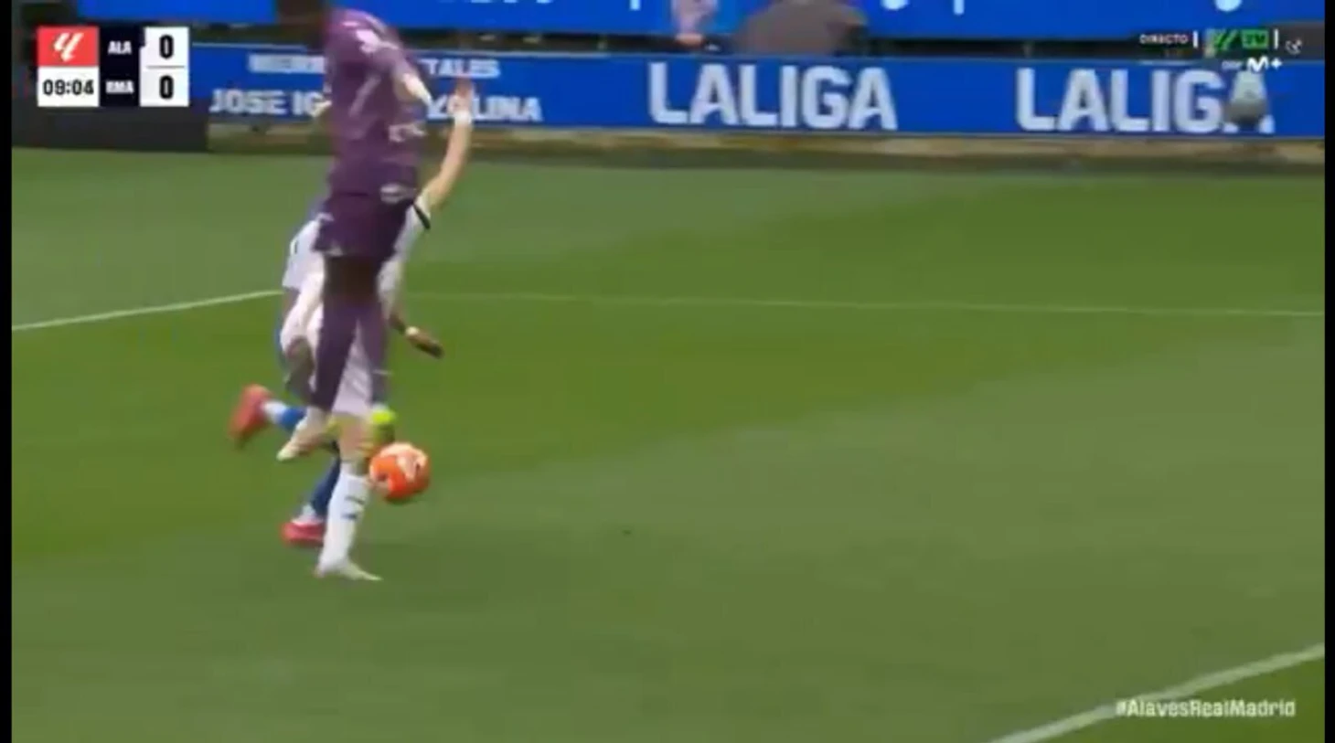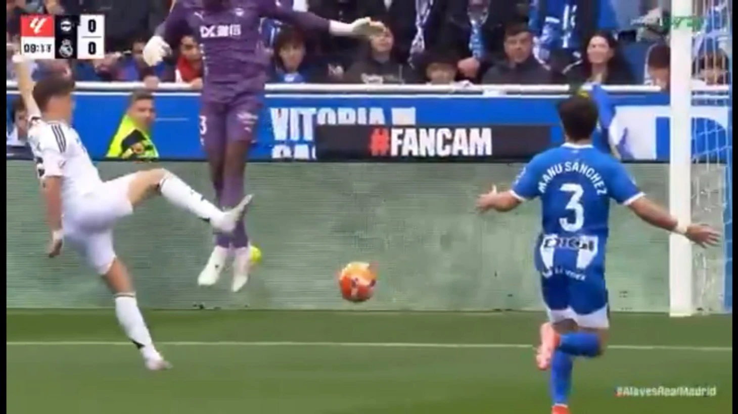 На 9-й минуте матча 31-го тура Ла Лиги хавбек «Реала» выскочил один на один с вратарем Хесусом Овоно, но не смог попасть по скачущему мячу.