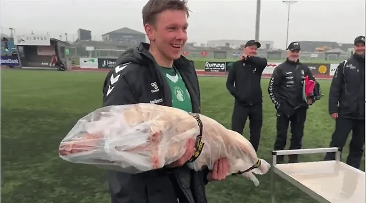 23-килограммовую тушу свиньи получил Ларсен из «Брюне» как приз игроку матча. Так соперники из «Вархауга» решили превзойти идею с наградой в виде яиц: «Поняли, что нам нужно действовать круче»