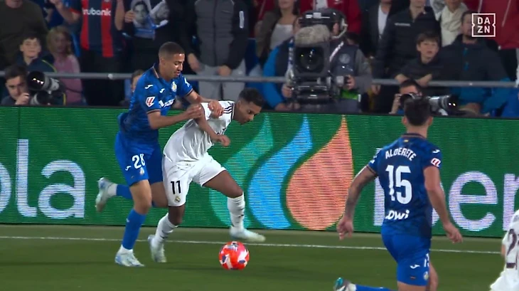 В добавленное ко второму тайму время защитник Исмаэль Бекуша в своей штрафной придержал за плечо вингера гостей Родриго, и бразилец упал на газон. Главный судья Хосе Мария Санчес Мартинес не стал останавливать игру и назначать 11-метровый.