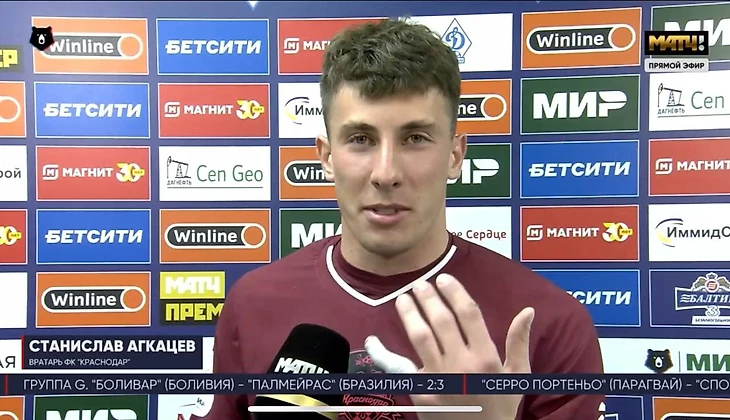 В пятницу «Краснодар» выиграл 3:2. На 101-й минуте Агкацев отбил пенальти в исполнении форварда Гамида Агаларова.
