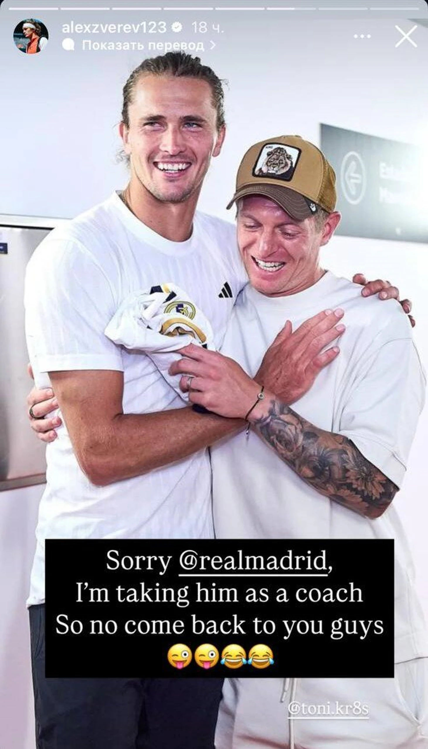 Теннисист Зверев выложил фото с Кроосом: «Реал», прости, но я беру его тренером. К вам он не вернется 😜😂»