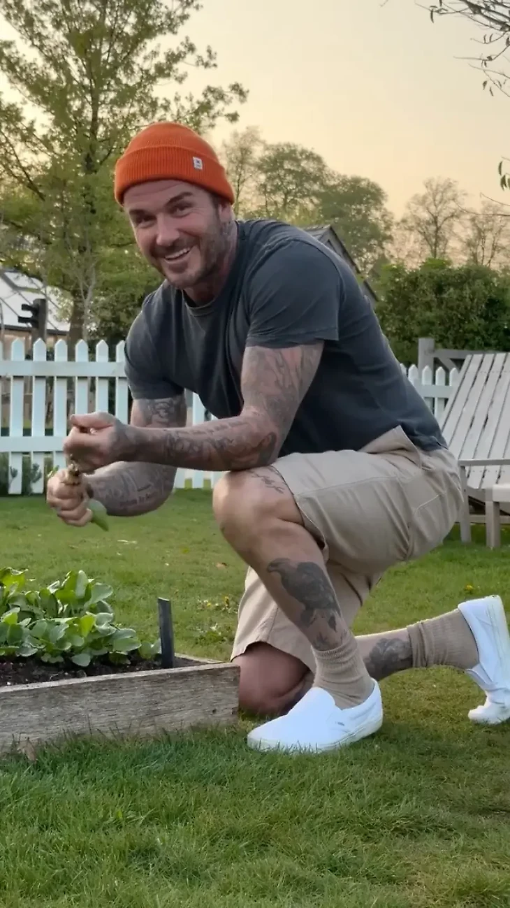 Бекхэм работал в саду, Виктория высмеяла его внешний вид: «Ты ведь знаешь, что женат на иконе стиля? Мне нравятся твои носки». Дэвид выращивает редис: «Она только что съела пять – вымытых, естественно»
