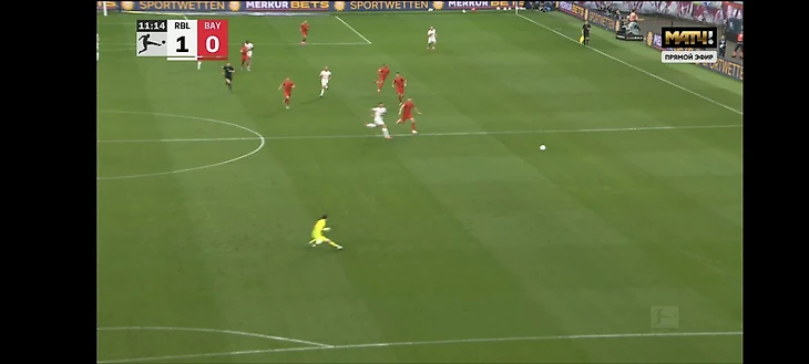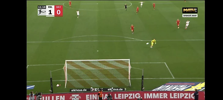 Нападающий «Лейпцига» Беньямин Шешко получил мяч рядом с центральной линией и побежал к воротам соперника. Вратарь мюнхенцев Урбиг выбежал из штрафной на перехват, но поскользнулся. Шешко заметил это и дальним ударом отправил мяч в пустые ворота.