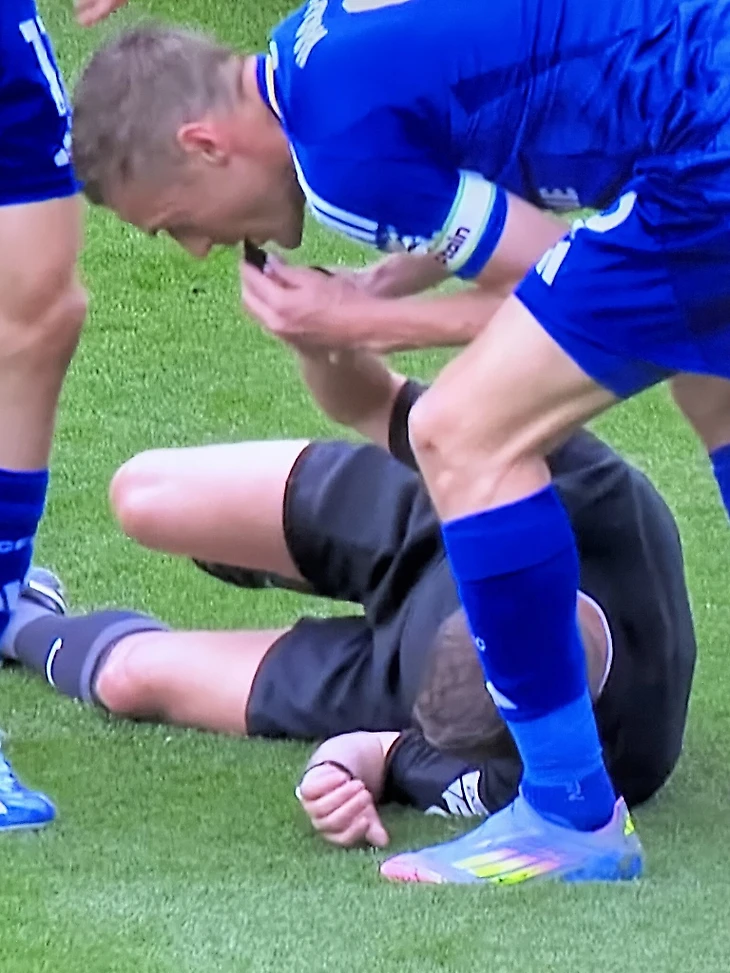 На 21-й минуте матча АПЛ форвард «Лестера» Джордан Айю столкнулся с рефери Дэвидом Уэббом, попав тому плечом в голову. Арбитр упал на газон. Нападающий «Лестера» Джейми Варди взял судью за руку, где у Уэбба был свисток, и дунул в него, чтобы остановить игру.