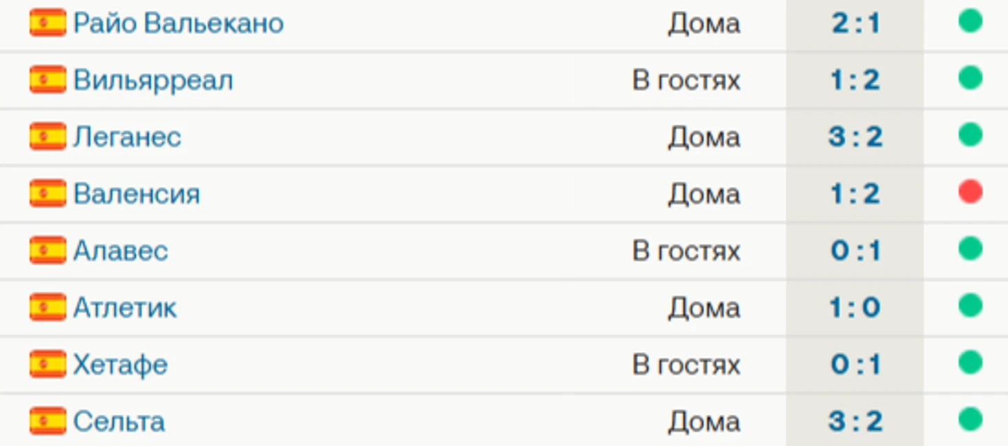 Ранее были выиграны матчи с «Хетафе», «Атлетиком», «Алавесом», «Леганесом», «Вильярреалом» и «Райо Вальекано». Единственное поражение на этом отрезке – 1:2 с «Валенсией» 5 апреля.