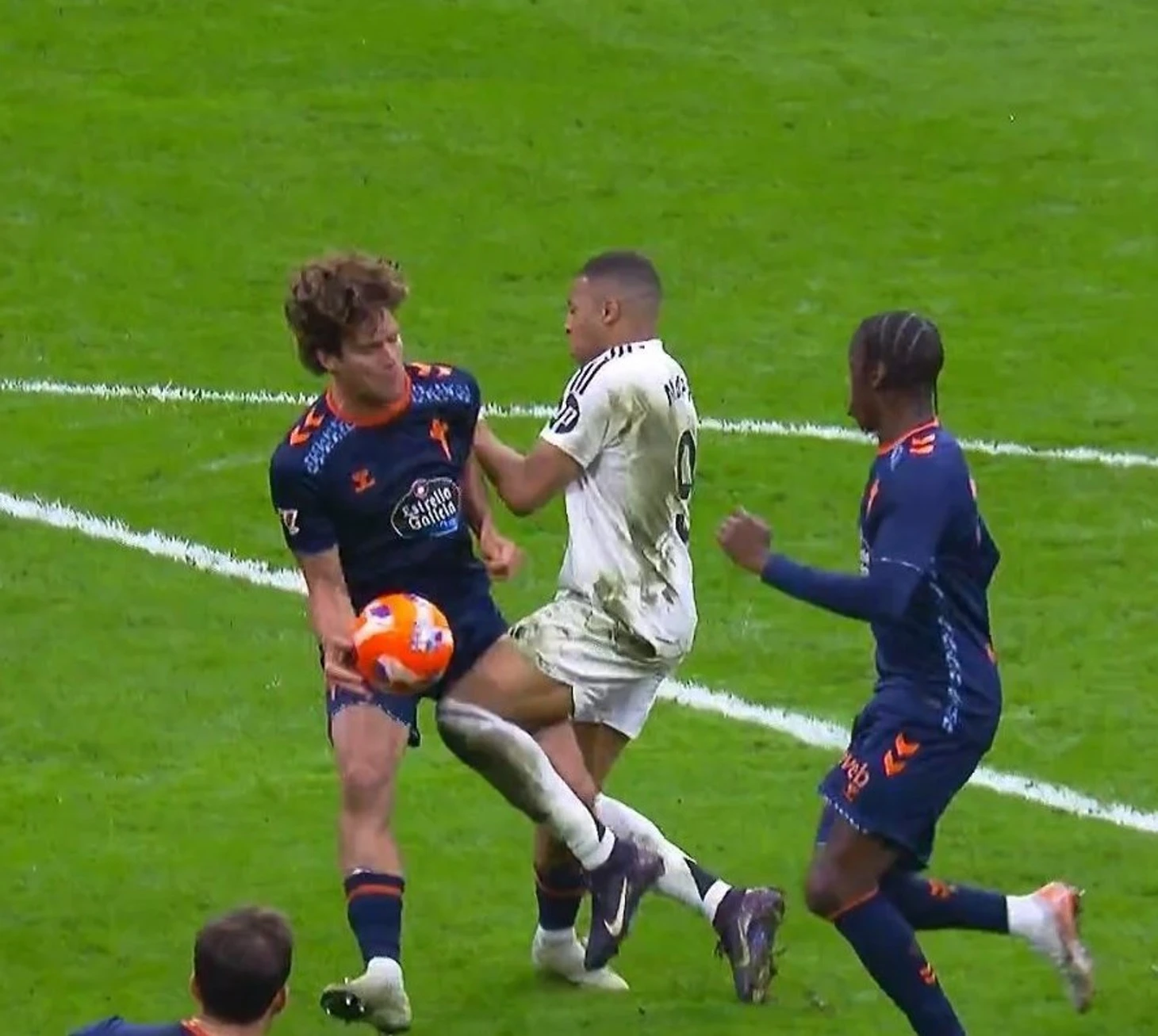 В эфире ТВ пожаловались, что в пользу «Реала» должны были дать два пенальти. Первый: за эпизод в штрафной «Сельты» при счете 3:1. Там, по мнению клубного ТВ, Йоэль Лаго сфолил на Феде Вальверде, толкнув игрока «Реала».