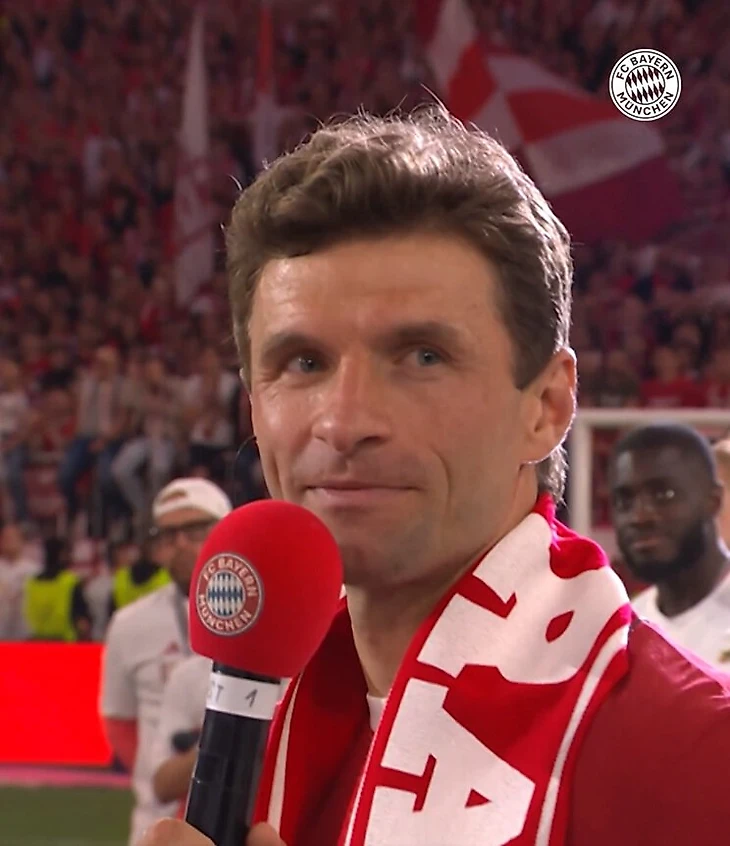 Когда я смотрю на стадион – он всегда полон, неважно против кого мы играем, будь то среда или суббота, дождь или снег. Весь мир завидует нам из-за этого храма футбола – и именно вы делаете его таким. Это трудный момент для многих, и для меня тоже, но он также и прекрасный. Та благодарность, которую вы мне выразили, – уникальна», – сказал Мюллер, выступая на «Альянц Арене» перед болельщиками.