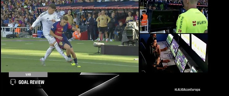 На 5-й добавленной ко второму тайму минуте Фермин Лопес забил пятый гол каталонцев. Главный арбитр матча Алехандро Эрнандес Эрнандес отменил гол после просмотра видеоповтора, увидев, что во время голевой атаки «Барселоны» мяч попал в руку Фермину в борьбе с Федерико Вальверде.