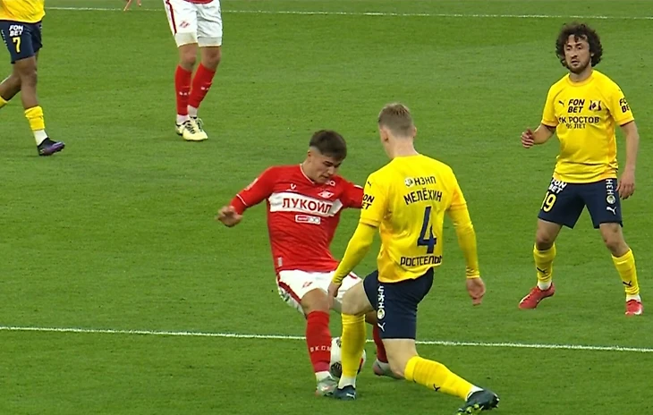 Форвард «Спартака» на 84-й минуте матча FONBET Кубка России наступил на ногу защитнику Виктору Мелехину.