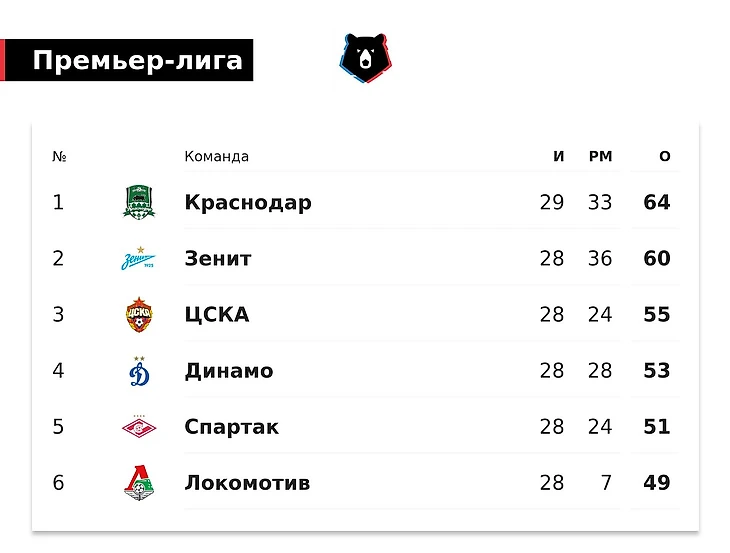 Таким образом, «Краснодар» набрал 64 очка в 29 матчах и возглавляет таблицу чемпионата.