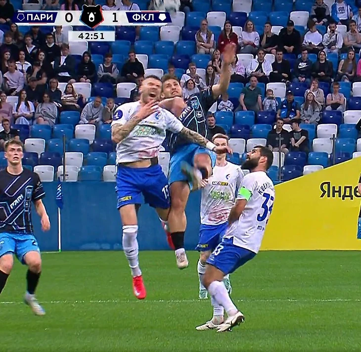 Боселли получил две желтые за 4 минуты в матче с «Факелом». Хавбек «Пари НН» локтем ударил Калинина в прыжке и был удален на 43-й