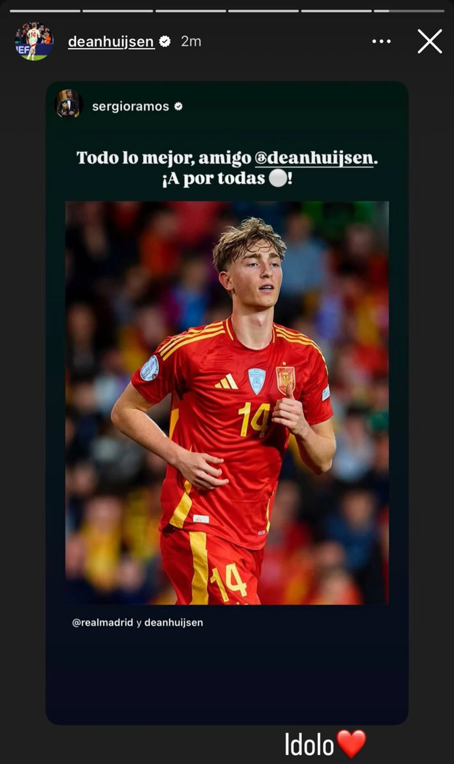 Хейсен ответил Серхио одним словом: «Кумир ❤️».