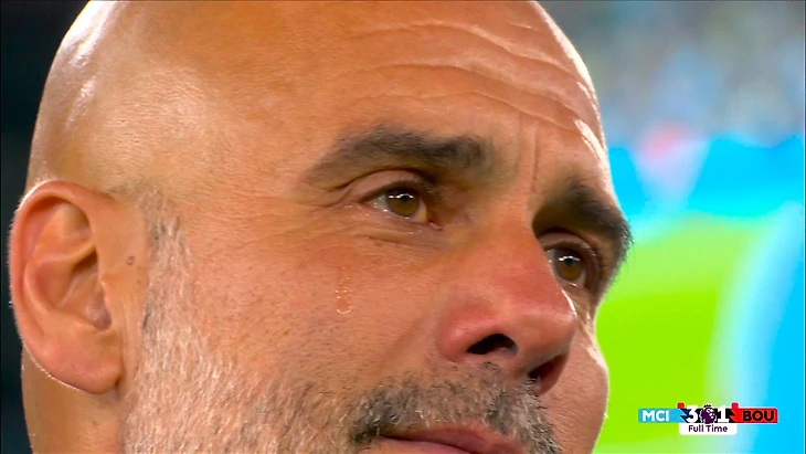 Во время слов де Брюйне главный тренер «Сити» Гвардиола не смог сдержать слез.