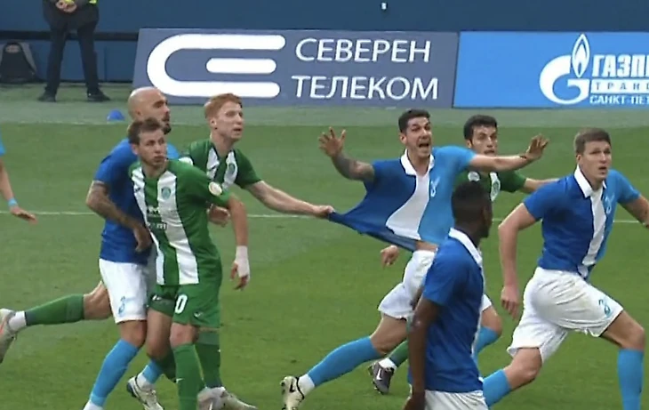 «Зенит» получил пенальти в игре с «Ахматом» – Камилов рукой тянул Нино за футболку. Мостовой реализовал 11-метровый
