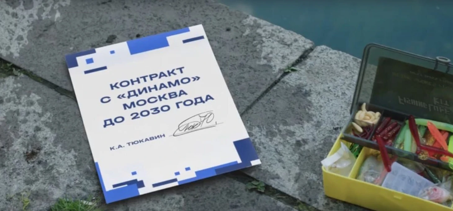 Тюкавин продлил контракт с «Динамо» до 2030-го. Клуб объявил это видео с актером Деревянко, где форвард вылавливает контракт удочкой