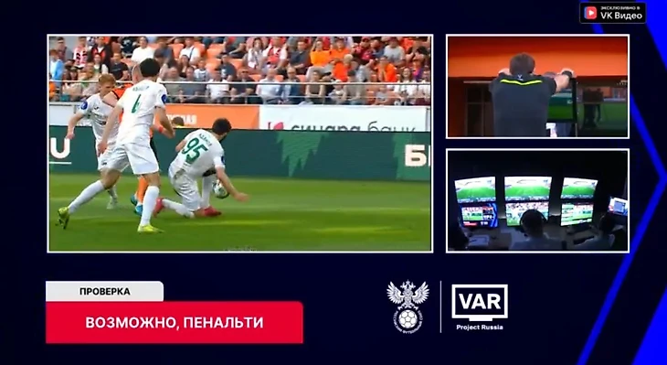 Главный арбитр матча Кирилл Левников не назначил пенальти и не изменил свое решение после просмотра видеоповтора.