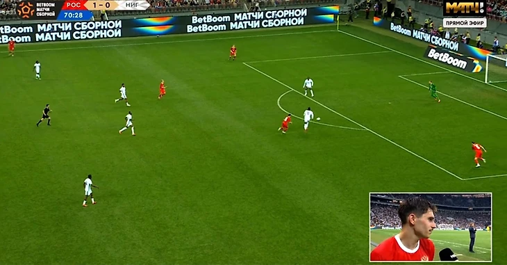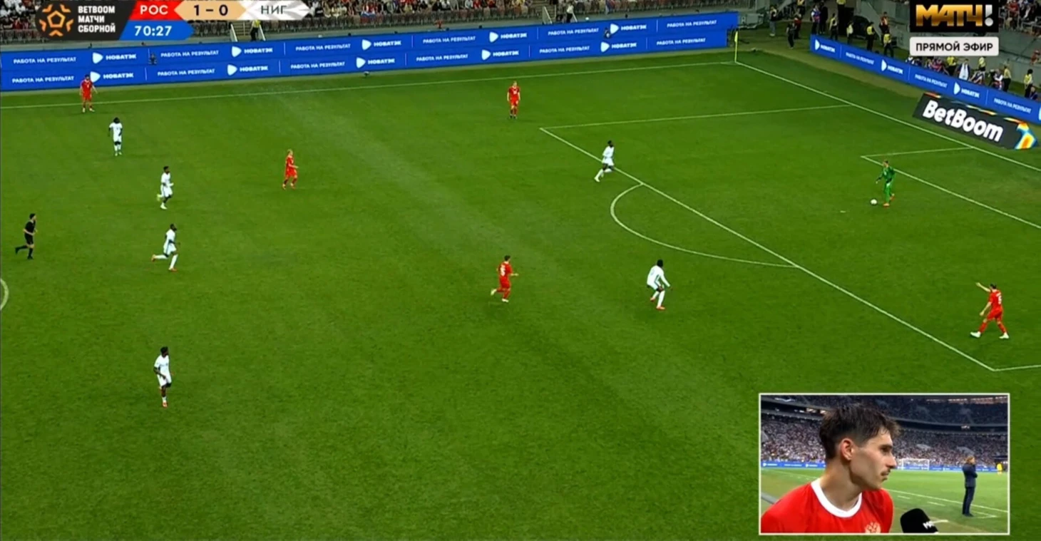 На 71-й минуте игры с Нигерией голкипер сборной России получил в своей штрафной мяч от партнера и попытался начать атаку через центральную зону, но сделал неточную передачу, которую удалось перехватить Толу Арокодаре. Форвард отправил мяч в сетку – 1:1.