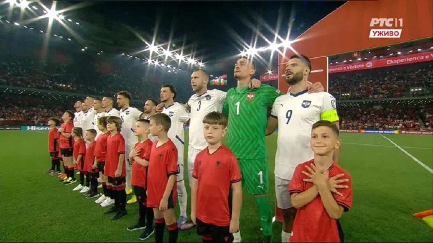Албанские фанаты освистали гимн Сербии. Некоторые из детей, выводивших команды на поле, показывали двуглавого орла