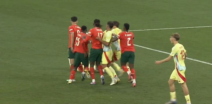 Игроки Испании и Португалии потолкались во время финала Лиги наций.