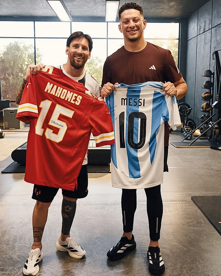 Месси и квотербек «Канзаса» Махоумс снялись в ролике adidas. Спортсмены обменялись игровой формой с автографами