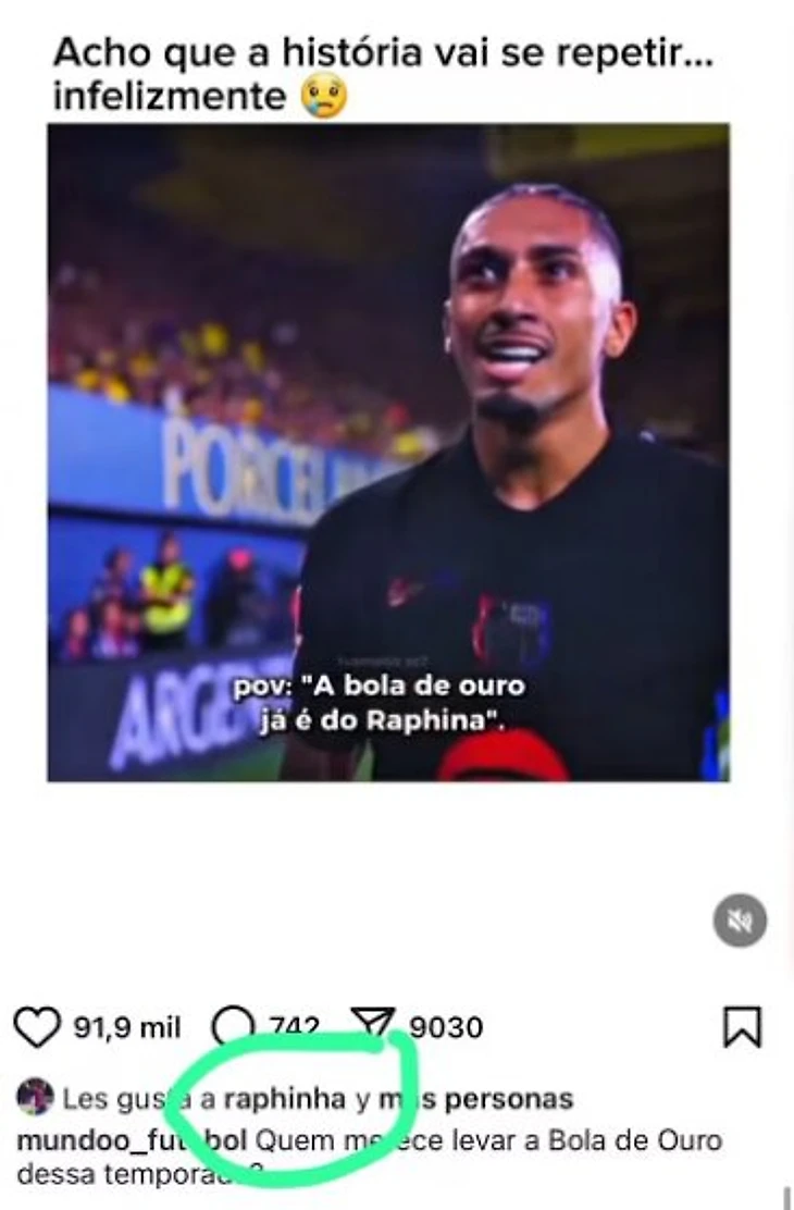 Рафинья лайкнул пост в соцсети, где сказано, что он не получит «Золотой мяч» – повторится история с Неймаром и Винисиусом