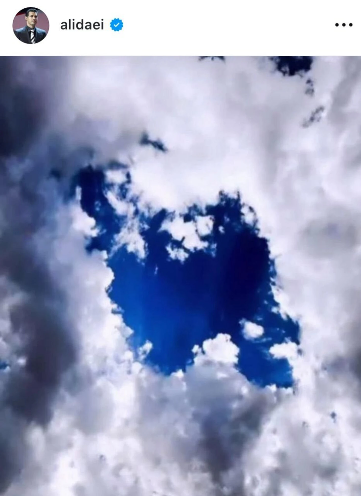 К публикации Даеи добавил фото неба, которое напоминает очертания Ирана.
